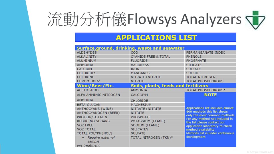 流動分析儀 Flowsys Analyzers - Applications List